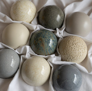 Each dome is individually finished in high-fired stoneware with layered glazes that shift and break uniquely in the kiln. No two are ever the same, which means your final arrangement has natural variation and richness you can’t fake.