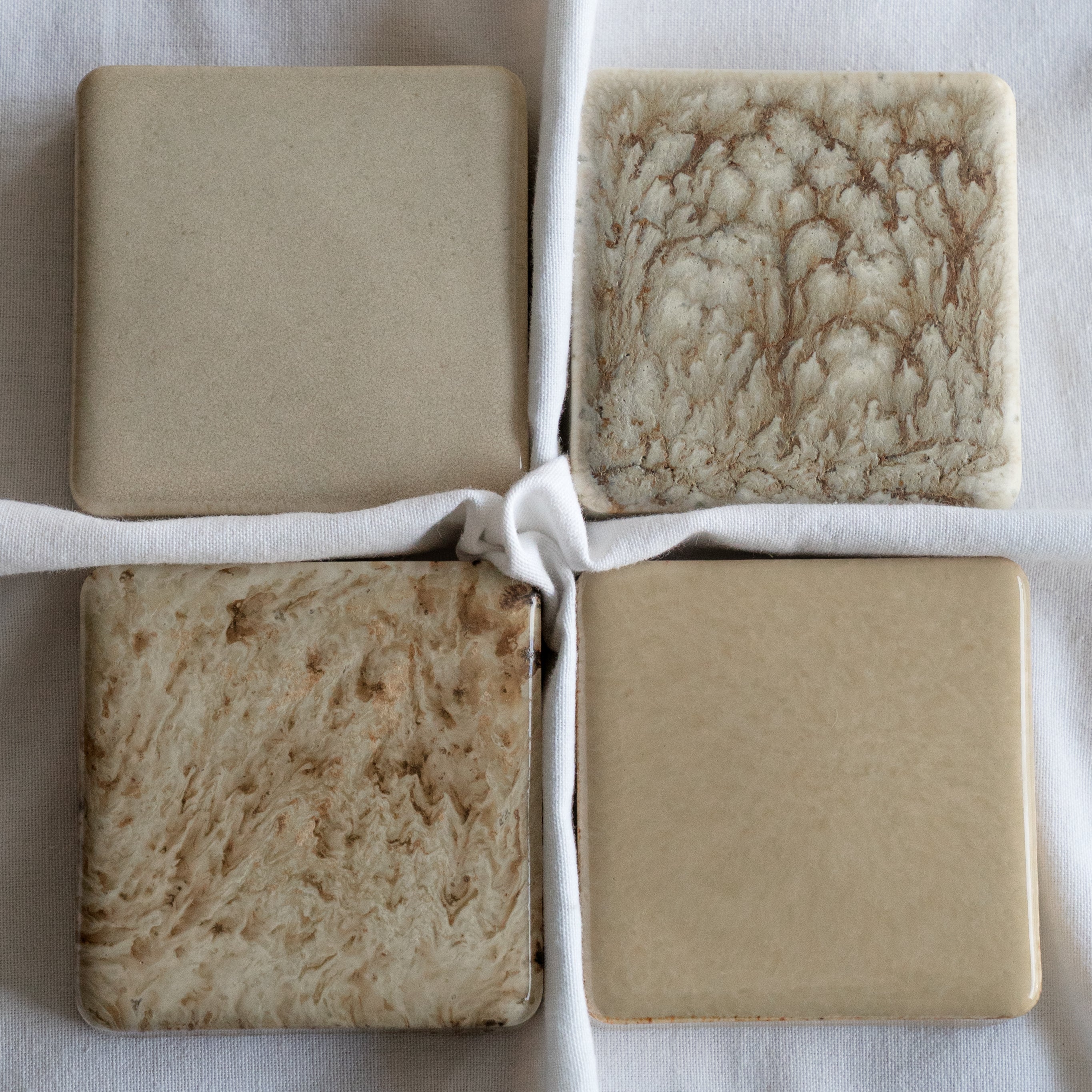 A hand-crafted set of 4 ceramic checkers. Each checker is designed to sit in a grid making for a piece of stunning ceramic wall art.