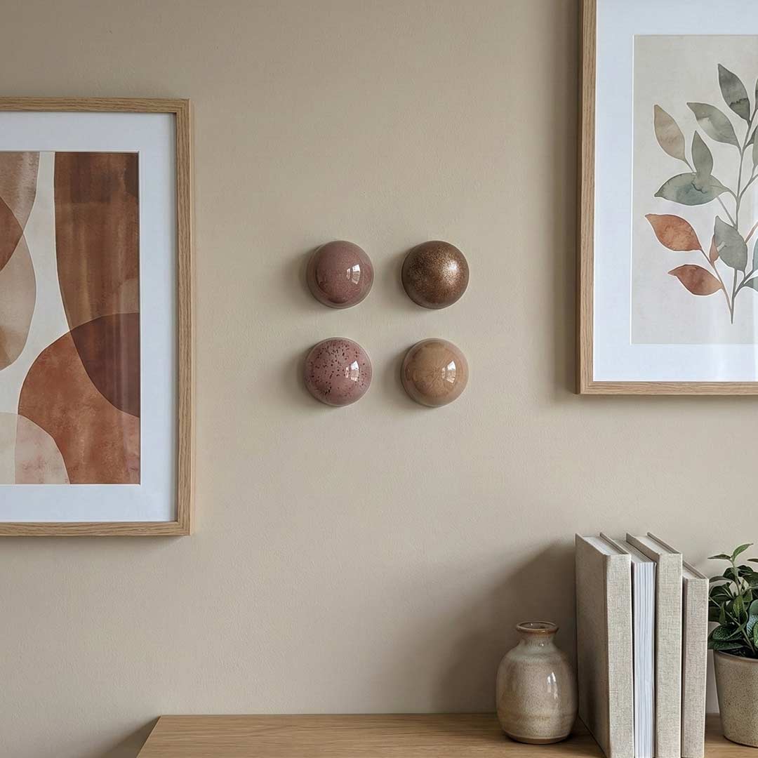 Bring depth, texture, and glow to your space with a hand-finished ceramic dome designed to catch light and add quiet movement to your wall. Each piece is glazed in small batches — no two are ever identical.